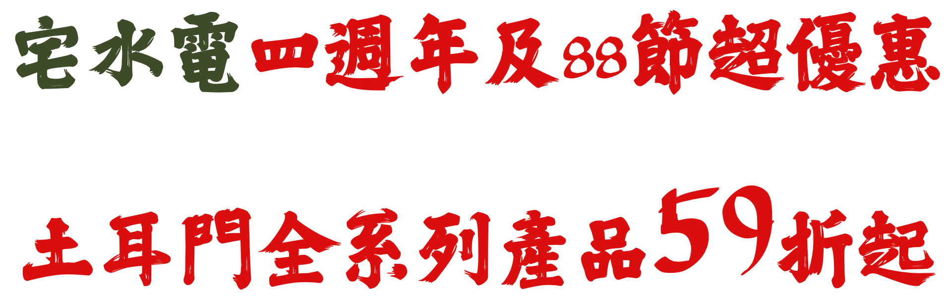 宅水電四週年慶及88節 超優惠 全店59折起 活動至8/31